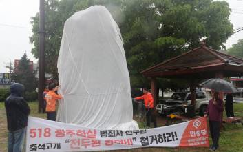 전두환 친필 기념비 가림막 불지른 남성 “분노 느껴서…”