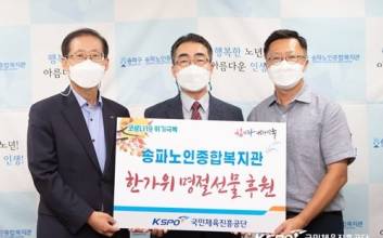 국민체육진흥공단(이하 공단)이 추석을 앞둔 지역 내 소외계층 및 협력사를 위해 상생과 나눔의 가치를 실천했다. 지난 14일 조현재 공단 이사장은 송파노인종합복지관을 방문해 한가위를 앞둔 어르신들을 위한 선물로 써 달라며 온누리상품권 200만원을 전달했다. 공단은 송파노인종합복지관 외에 인근 9개 복지관에도 추석선물을 제공하는 등 총 2000만원을 기부했다. 또한 공단은 코로나19로 어려운 시기에 공단과 함께하고 있는 13개 협력기업들과의 상생문화 조성을 위해 총 300만원 상당의 추석선물을 제공했다. 이은경 기자
