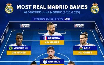 스페인 라리가 레알 마드리드 미드필더 루카 모드리치(40)가 소속팀에서의 마지막 경기를 마쳤다. 한 축구 통계 매체는 그의 커리어를 돌아보며 이제까지 그와 가장 많은 경기를 함께 뛴 선수로 꾸린 베스트11을 공개했다.유럽 축구 통계 매체 트랜스퍼마르크트는 24일(한국시간) 모드리치와 관련한 이색적인 베스트11을 조명했다. 모드리치는 이날 스페인 마드리드의 산티아고 베르나베우에서 열린 레알 소시에다드와의 2024~25 라리가 최종전서 선발 출전, 팀의 2-0 승리를 이끌었다. 이 경기는 시즌 뒤 레알과 계약이 만료되는 모드리치의 마지막 경기였다.모드리치는 레알에서만 13년 동안 활약했다. 지난 2012년 토트넘(잉글랜드)을 떠나 레알에 입성, 팀의 전성기를 이끈 핵심 미드필더였다. 모드리치는 레알에서만 공식전 591경기 43골 95도움을 올렸다. 이 기간 레알은 유럽축구연맹(UEFA) 챔피언스리그(UCL)에서만 6차례 우승했다. 라리가 4회·스페인 국왕컵 2회·국제축구연맹(FIFA) 클럽 월드컵 5회 등 각종 트로피를 추가했다. 지난 2018년에는 FIFA 월드컵에서 크로아티아를 준우승으로 이끈 활약을 인정받아 축구 선수 최고 영예인 발롱도르를 품기도 했다. 모드리치는 30대 중반을 넘어서도 꾸준히 레알과 재계약을 맺으며 장기 동행했는데, 결국 이날을 끝으로 마침표를 찍게 됐다. 레알 구단과 팬들은 떠나는 모드리치를 향해 찬사를 보냈다. 경기 중엔 교체되는 모드리치를 위해 상대 팀인 소시에다드 선수단도 도열해 떠나는 베테랑에게 박수를 보냈다. 모드리치의 전 동료인 토니 크로스도 깜짝 등장해 그와 진한 포옹을 나눠 팬들의 눈길을 끌었다. 같은 날 트랜스퍼마르크트는 모드리치와 함께 출전한 선수들로 꾸린 베스트11을 공개했다. 매체는 “모드리치는 디나모 자그레브(크로아티아)와 토트넘에서의 시간도 소중히 기억하겠지만, 거의 커리어 대부분은 레알이었다”며 “그와 가장 많은 경기를 함께 뛴 선수를 살펴보면 전부 레알 출신이라는 점은 놀랍지 않다”라고 조명했다.매체가 꾸린 모드리치 동반 최다 출전 베스트11에는 카림 벤제마(알 이티하드·404경기) 비니시우스 주니오르(255경기) 가레스 베일(은퇴·301경기) 페데리코 발베르데(228경기) 카세미루(맨체스터 유나이티드·259경기) 크로스(은퇴·334경기) 마르셀루(252경기) 라파엘 바란(이상 은퇴·268경기) 세르히오 라모스(몬테레이·282경기) 다니 카르바할(324경기) 티보 쿠르투아(247경기)로 구성됐다. 모드리치의 전성기를 함께한 크리스티아누 호날두(알 나스르)의 이름은 없었다. 매체에 따르면 모드리치와 호날두는 함께 222경기를 뛰었다. 호날두는 이 부문 14위에 올랐다. 한편 모드리치가 가장 많은 경기를 함께한 사령탑은 카를로 안첼로티 감독이다. 소시에다드전을 포함해 276번째 경기 동안 안첼로티 감독과 함께했다. 모드리치는 지네딘 지단(202경기) 해리 래드냅(152경기) 조제 모리뉴(53경기) 감독의 지휘를 받기도 했다.김우중 기자 2025.05.25 14:50