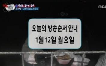 '진짜사나이' 측이 방송사고를 냈다.11일 방송된 MBC '일밤-진짜사나이'에서는 칠성 수색대대편이 방송됐다.멤버들은 DMZ 매복 훈련을 소화하고 별 두 개씩을 받는 모습이 그려졌다. 포상으로 어묵탕을 받은 멤버들은 따뜻한 국물을 마시며 몸을 녹였다. 이때 '오늘의 방송 순서 안내/1월12일 월요일'이란 큰 자막이 갑작스레 등장했다. 화면 한 가운데 꽉 찰 정도로 커 찰나지만 방송 몰입을 방해했다. 시청자들이 고개를 갸우뚱 할 수 밖에 없는 상황. 온라인상에도 방송자막사고를 지적하는 글이 즉각 올라왔다.이날 방송에서는 멤버들이 살이 찢어질 듯한 칼바람을 이겨내야 하는 칠성표 혹한기 훈련에 돌입한 모습이 그려졌다. 영하 22도 추위에 멤버들은 모두 말을 잃었고 얼음물에 입수하는 훈련을 받아야 했다. 헨리는 과거와 달리 얼음물을 견디며 '진짜사나이'로 거듭난 모습을 보여줬다.김진석 기자 superjs@joongang.co.kr 2015.01.11 20:43