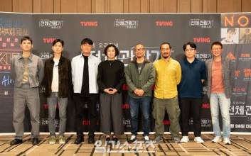 광경택, 김곤, 김선, 김초희, 류덕환, 홍석재, 조현철, 주동민감독이 26일 오후 온라으로 열린 티빙 '전체관람가 숏버스터' 온라인 제작발표회에 참석해 포즈를 취하고 있다.사진=티빙 제공2022.04.26 2022.04.26 16:39