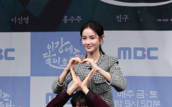 배우 이신영, 홍수주가 30일 오전 서울 마포구 상암 MBC 골든마우스홀에서 열린 MBC 새 금토드라마 '이강에는 달이 흐른다' 제작발표회에 참석해 포토타임을 갖고 있다. '이강에는 달이 흐른다'는 웃음을 잃은 세자와 기억을 잃은 부보상의 영혼 체인지 역지사지(易地四肢) 로맨스 판타지 사극. 오는 11월 7일 밤 9시 50분 첫 방송. 서병수 기자 qudtn@edaily.co.kr /2025.10.30/ 2025.10.30 11:47