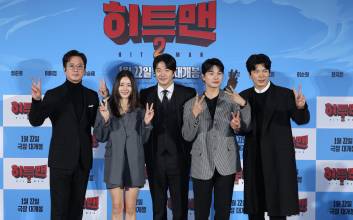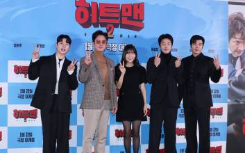 배우 정준호, 황우슬혜, 권상우, 이이경, 김성오가 27일 오전 서울 용산구 용산CGV아이파크몰에서 열린 영화 '히트맨2' 제작보고회에서 포즈를 취하고 있다. '히트맨2'는 대히트 흥행 작가에서 순식간에 ‘뇌절작가’로 전락한 ‘준’이 야심 차게 선보인 신작 웹툰을 모방한 테러가 발생하고, 하루아침에 범인으로 몰리면서 벌어지는 코믹 액션 영화이다. 내달 1월 22일 개봉. 서병수 기자 qudtn@edaily.co.kr /2024.12.27/ 2024.12.27 12:34