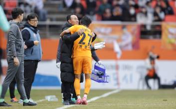 역습 기회를 엿본 수원FC는 후반 18분 이용이 다소 먼 거리에서 골키퍼 김동준을 넘기는 과감한 슈팅으로 균형을 맞췄다. 연이은 공격을 시도한 수원은 연이어 제주 골문을 두들겼고, 결국 추가시간 이승우가 페널티킥(PK)을 얻어냈다. 그는 후반 추가시간 4분 김태환을 돌파한 뒤 크로스를 올렸는데, 이 공이 최영준의 손에 맞았다. 키커로 나선 이승우는 골문 오른쪽 구석으로 차 넣으며 역전극을 완성했다. 수원FC는 이승우의 역전 골에 힘입어 리그 2연승을 질주했다.끝으로 포항스틸야드에서 열린 리그 1·2위 포항과 김천은 득점 없이 비겼다. 두 팀은 치열한 점유율 싸움을 벌였는데, 공격에서는 다소 부정확한 슈팅이 나왔다. 김천이 시작과 함께 김진규의 슈팅으로 포문을 열었지만, 골키퍼 황인재에게 막혔다. 이후 두 팀은 좀처럼 유효 슈팅을 만들지 못했다. 포항 입장에선 후반 막바지 완델손의 침투패스를 받은 윤민호가 박스 안 왼발 슈팅을 시도했는데, 골키퍼 강현무에게 막히며 아쉬움을 삼켰다. 포항이 여전히 리그 1위(승점 17), 김천은 2위(승점 16)를 지켰다.김우중 기자