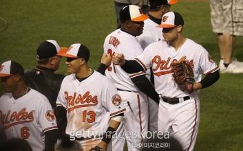 아메리칸 리그 볼티모어 오리올스가 이번 주 4승 2패를 기록하면서 다시 동부지구 선두를 탈환했다. 특히 크리스 틸먼은 화요일 뉴욕 양키스, 일요일 오클랜드 애슬레틱스를 상대로 연거푸 퀄리티 스타트를 기록하면서 승리, 오리올스가 원하는 에이스의 모습을 (시즌기록 4승 1패 평균자책점 3.05) 보여주고 있다. 보스턴 레드삭스도 양키스 원정에서 2연패를 당하면서 1위 자리를 내줬지만 스티븐 라이트의 호투를 발판삼아 일요일 경기를 잡으면서 볼티모어를 반게임차로 바싹 뒤쫓고 있다. 거액을 주고 야심차게 영입한 데이빗 프라이스의 부진이 조금 아쉽다. 프라이스는 토요일 경기에서 4.2이닝 6실점으로 패전을 기록했다. 평균자책점은 6.75까지 올라갔다. 중부지구에서는 시카고 화이트삭스의 기세가 여전히 무섭다. 레드삭스에겐 1승 2패를 기록하며 약간 주춤했지만, 미네소타 트윈스를 상대로 3승을 거두며 중부지구 선두 자리를 굳건하게 지켰다. 원투펀치 크리스 세일과 호세 퀸타나가 각자2승씩 올리며 신바람을 냈다. 크리스 세일은 7연승. 반면 디트로이트 타이거스는 클리블랜드 인디언스와 텍사스 레인저스에게 스윕을 당하며 6연패의 늪에 빠졌다. 중심타자 제이디 마르티네즈의 이번주 성적은 참담하기 그지 없는 22타수 1안타 (0.045.) LA 에인절스는 이번 주 1승 5패를 기록하면서 서부지구 4위까지 떨어진데다가 부상의 악령까지 덮쳐서 힘든 시기를 보내고 있다. 에이스 개럿 리차즈가 팔꿈치 부상으로 토미존 수술을 받을 것으로 보이며 또다른 영건 앤드류 히니도 역시 팔꿈치 인대에 문제가 있다고 한다. 어깨 부상중인 CJ 윌슨과 토미존 수술에서 아직 돌아오지 못한 타일러 스캑스에다가 리차즈, 히니까지 부상이 겹쳐 로테이션 전체에 빨간 불이 들어왔다. 트라웃이 이번 주 2홈런을 포함해 여섯 경기에서 24타수 10안타 (0.417)를 기록하며 분전했지만 에인절스의 올시즌은 먹구름이 가득해보인다. 오클랜드 애슬레틱스와 에인절스가 1승 5패를 거두며 부진한 사이, 레인저스와 시애틀 매리너스가 치고 나가며 서부지구에서의 양강 체제를 굳건히 할 준비를 하고 있다. 특히 매리너스의 로빈슨 카노는 이번 주에만 4홈런포함, 31타수 16안타 (0.516)의 성적을 기록하며 MVP 후보로 손색없는 모습을 보이고 있다. 시즌 성적은 12홈런 33타점, 0.305의 타율과 0.988의 OPS를 기록하고 있다. ◇ 아메리칸 리그 승률 순위 (5월 9일 기준) 내셔널 리그 마이애미까지 이번 주 4승 2패를 기록하면서, 내셔널리그 상위 여섯 팀 중 네 팀이 동부 지구 소속인 진풍경이 연출되었다. 브라이스 하퍼는 어제 네 타석에 들어서 세 번의 볼넷을 (다른 한 타석은 희생타) 얻어내더니, 오늘은 일곱 타석에서 무려 여섯 개의 볼넷을 (다른 한 타석은 몸에 맞는 공)얻어내는 진기록을 기록했다. 92년생의 이 젊은 선수가 메이저리그 투수들에게 얼마나 껄끄러운 상대인지를 알 수 있는 대목이다. 반면 하퍼보다 19살이 많은 뉴욕 메츠의 노장 투수 바톨로 콜론은 커리어 첫 홈런을 기록했다. 평소 뚱뚱한 몸집과 우스꽝스러운 스윙 동작으로 많은 재미있는 장면을 생산해냈던 그는 샌디에이고 파드레스의 제임스 쉴즈를 상대로 좌측 담장을 넘어가는 투런포를 때려냈다. 콜론은 마운드에서도 애틀랜타 브레이브스전 8이닝 무실점, 파드레스전 6과 2/3이닝 3실점으로 팀에게 2승을 안겨주는 만점 활약을 거두었다. 이에 힘입은 메츠는 내셔널스에 반 경기차 앞선 1위를 달리고 있다. 컵스는 이번주에만 7승을 보태면서 8할 승률에 도달, 고공행진을 계속 이어가고 있다.아리에타가 이끄는 선발진은 철벽이며 스트롭, 론돈의 뒷문도 든든하다.내야, 외야, 심지어 벤치 선수들까지 뛰어난 활약을 보이고 있다. 이런 컵스의 활약의 중심에는 앤쏘니 리쪼가 있는데, 그는 일주일간 무려 여섯 개의 2루타를 곁들이면서 29타수 12안타 (0.414)의 빼어난 성적을 기록했다. 강정호가 복귀한 피츠버그 파이어리츠가2위를 달리고 있으며 오승환의 세인트루이스 카디널스가 그 뒤를 잇고 있지만 컵스의 뒤를 쫓아가기는 버거워보인다. 하위권의 밀워키 브루어스는 지미 넬슨을 제외하면 선발진에서 퀄리티 스타트도 기대하기 힘든 실정이며 이는 라이젤 이글레시아스가 부상자명단에 오른 신시내티 레즈도 마찬가지이다. 살얼음판의 서부지구는 이번주에도 모든 팀들이 고만고만한 성적을 올리며 순위를 유지했다. LA 다저스는 켄리 잰슨을 제외한 불펜이 좋지 못한 모습을 보여주고 있다. 애덤 리베라토레는 부상자명단에서 복귀하긴 했지만 조 블랜튼, 케이시 피엔, JP 하웰, 그리고 페드로 바에즈까지 모두 이번 주 평균자책점이 10이 넘는다(!) 다저스는 그나마 동부 원정을 마치고 홈 9연전이 기다리고 있는 것이 고무적이다. 다저스에 승차없이 승률에서 1리 뒤져 2위를 기록중인 자이언츠는 초반 부진을 기록하던 제프 사마자가 화요일 신시내티 원정에서 8이닝, 오늘 콜로라도 로키스와의 홈경기에서 7과 2/3이닝을 던지며 반전의 모습을 보여준 것이 반갑다. 사마자는 그 두 경기에서 삼진도 각각 9개씩이나 잡아냈다. ◇ 내셔널 리그 승률 순위 (5월 9일 기준) 베스