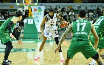안양 실내체육관에서는 2위 KT가 정관장을 90-77로 제압하고 5연승 파죽지세를 이어갔다. 27승 13패로 선두 DB와 격차는 4경기 차. 반면 정관장은 6연패 늪에 빠지며 13승 27패로 8위에 처졌다.KT가 1쿼터부터 26-16으로 크게 앞서는 등 일찌감치 승기를 잡았다. 경기 초반 8-0으로 앞선 KT는 1쿼터 막판 2점 차까지 추격을 허용했지만, 1분 10초를 남기고 패리스 배스의 덩크슛에 한희원의 연속 5득점을 더해 순식간에 10점 차까지 격차를 벌렸다. 기세가 오른 KT는 쿼터 배스와 하윤기의 연속 득점 등을 앞세워 2쿼터 중반 한때 49-27까지 앞섰다. 결국 전반은 KT의 57-39 리드.궁지에 몰린 정관장은 3쿼터 대반격에 나서 경기 막판 한때 7점 차까지 격차를 벌렸다. 그러나 3쿼터 숨을 고른 KT는 4쿼터 중반 이후 승기를 굳혔다. 5점 차로 앞선 가운데 한희원의 스틸에 이은 배스의 속공 득점이 시작이었다. 배스는 이후 덩크슛과 외곽포 등 내·외곽을 가리지 않고 맹폭을 가했다.KT는 80-70으로 앞선 상황에서 배스의 자유투 4개와 정성우의 외곽포를 더해 승기를 굳혔다. 87-77로 앞선 종료 10초 전엔 정성우가 경기에 마침표를 찍는 3점슛까지 성공시켰다.KT는 배스가 무려 41득점에 16리바운드 8어시스트 맹활약을 펼쳤다. 하윤기는 13득점, 정성우와 한희원은 각각 11점과 10점으로 두 자릿수 득점을 쌓았다. 정관장은 로버트 카터가 33득점으로 분전했고, 박지훈도 12득점으로 힘을 보탰으나 경기 초반부터 기운 승기를 끝내 극복하지 못했다.김명석 기자