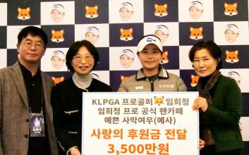 '사막여우' 임희정(25·두산건설)이 5년 연속으로 백혈병·소아암 환아를 위한 선행을 이어갔다. 임희정은 지난 18일(화) 팬클럽 ‘예사(예쁜 사막여우)’와 함께 한국백혈병소아암협회에 3500만원을 기부했다. 이는 2021년부터 5년째 이어온 선행으로, 선수와 팬이 함께 뜻을 모아 꾸준히 나눔을 실천해온 사례로도 주목받고 있다.이번 기부금은 임희정이 대회 때마다 기록한 버디와 이글 수에 따라 팬클럽 회원들이 조성한 기금에, 임희정이 사비를 더해 마련됐다. 지난 2021년 2022만원을 시작으로 2022년 3000만원, 2023년 2500만원, 2024년 3200만원을 전하며 5년동안 약 1억 4200만원의 기부금을 전달했다.임희정은 “힘든 시기를 지나 이제는 정상적인 컨디션으로 경기에 나설 수 있음에 감사하다”며 “프로 선수로서 사회에 선한 영향력을 전하고 싶다는 마음은 변함이 없다. 시즌을 마무리한 뒤 더욱 착실히 준비해, 내년에도 백혈병, 소아암 환아들에게 힘이 되고 싶다”고 전했다.2019년 한국여자프로골프(KLPGA) 투어 프로 데뷔 이후 첫 해에만 3승을 거두며 돌풍을 일으킨 임희정은 KLPGA 통산 5승(메이저 2승 포함)을 기록 중이다. 또한 2021년과 2022년, 팬들이 직접 뽑은 ‘KLPGA 인기상’을 두 차례 수상하며 국내 여자골프를 대표하는 선수로 자리매김했다.특히 올해는 부상에서 완전히 회복한 모습을 보이며 준우승 1회, 3위 2회, TOP10 8회를 기록했다. 안정된 경기력으로 다시 상승세를 타고 있는 만큼, 내년 시즌 기대감도 한층 높아지고 있다.윤승재 기자 2025.11.19 09:14
