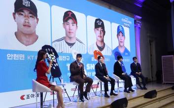(주)조아제약과 일간스포츠가 공동제정한 '2025 조아제약 프로야구 대상' 시상식이 2일 오전 서울 강남구 라움아트센터에서 열렸다. 2부 토크쇼에서 KT 안현민, LG 임찬규, 한화 문동주, 삼성 원태인이 MC와 토크를 하고 있다. 국내 최고의 권위를 자랑하는 일간스포츠-조아제약 프로야구 대상은 1977년 출범 이후 48년의 역사를 이어온 명실상부 국내 최고의 프로야구 시상식이다. 올해 시상식은 전통 시상식의 틀을 뛰어넘어, 팬들이 참여하는 토크쇼, 특별사인회 등 다채로운 행사로 거듭났다. 특별취재단/2025.12.02/ 2025.12.02 13:54