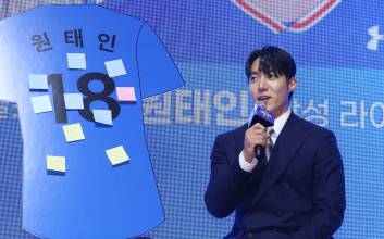 [포토] 2부 토크쇼, 인사말하는 원태인