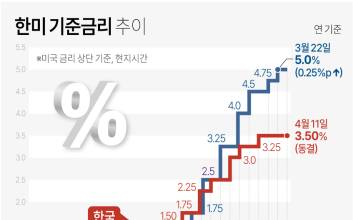 한국은행 금융통화위원회(이하 금통위)가 세 차례 연속 기준 금리를 동결시켰다. 금통위는 25일 지난 2월과 4월에 이어 25일 기준금리를 다시 3.50%로 묶었다. 지난달 소비자물가 상승률(3.7%)이 14개월 만에 3%대로 떨어져 인플레이션(물가 상승) 압력이 다소 줄어든 상태에서 굳이 무리하게 금리를 더 올려 가뜩이나 위축된 경기와 금융에 찬물을 끼얹을 이유가 없다고 판단한 것으로 해석된다.세 차례 연속 동결로 1월 13일 이후 4개월 넘게 3.50% 기준금리가 유지되고 있다. 이로 인해 시장에서는 상반기가 아닌 하반기 금리 인상 기대가 커질 것으로 전망되고 있다.이날 한은이 다시 동결을 결정한 데는 무엇보다 불안한 경기 상황이 가장 큰 영향을 미쳤다. 수출 부진이 이어지는 가운데 지난 1분기 우리나라 실질 국내총생산(GDP) 성장률(전분기 대비·0.3%)은 민간소비 덕에 겨우 두 분기 연속 역성장을 피했다. 3월 경상수지도 국내기업 해외 현지법인의 배당에 기대 힘겹게 석 달 연속 적자를 모면했다.하지만 통관기준 무역수지는 4월(-26억2000만 달러)까지 여전히 14개월째 적자에서 벗어나지 못하고 있다.고조되는 금융시장의 위험도 고려된 것으로 보인다. 실리콘밸리은행(SVB) 사태 이후 글로벌 금융 불안이 이어지는 가운데 계속 금리 인상으로 압박하면 취약한 저축은행이나 카드사(여신전문금융회사) 등에서부터 부실 문제가 터질 수 있기 때문이다.이날 금통위 회의에 앞서 일각에서는 역대 최대 수준(1.75%)으로 벌어진 미국과의 기준금리 격차를 줄이기 위해 한은이 0.25% 추가 인상에 나설 수 있다는 관측도 있었다.그러나 아직 뚜렷하게 원화 약세(원/달러 환율 상승)와 외국인 자금 유출이 나타나지 않았기 때문에 한은으로서는 '추가 인상 없이 버틸 수 있다'고 판단한 것으로 해석된다.더구나 연방준비제도(Fed·연준)의 6월 기준금리(정책금리) 동결설에 갈수록 힘이 실리면서 '역전 폭 확대'에 대한 부담도 다소 줄었다.금통위가 이날 기준금리를 다시 동결하면서 미국과 격차는 1.75%(한국 3.50%·미국 5.00∼5.25%)로 유지됐다. 김두용 기자 k2young@edaily.co.kr