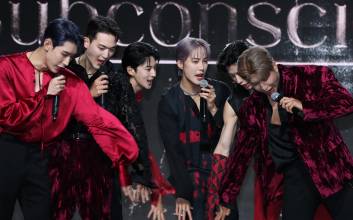 VAV(브이에이브이) 로우, 지우, 에이스, 에이노, 제이콥, 세인트반이 12일 오전 서울 강남구 일지아트홀에서 진행된 미니 7집 'Subconscious(서브칸셔스)' 발매 기념 쇼케이스에 참석해 포토타임을 갖고 있다.