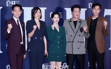 이정재 감독, 배우 전혜진, 고윤정, 허성태, 정우성(왼쪽부터)이 2일 오후 서울 강남구 메가박스 코엑스점에서 열린 영화 '헌트(HUNT)' 쇼케이스 및 VIP 시사회에 참석해 포토타임을 갖고 있다.'헌트'는 조직 내 숨어든 스파이를 색출하기 위해 서로를 의심하는 안기부 요원 '박평호'(이정재)와 '김정도'(정우성)가 '대한민국 1호 암살 작전'이라는 거대한 사건과 직면하며 펼쳐지는 첩보 액션 드라마다. 오는10일 개봉.서병수 기자 qudtn@edaily.co.kr / 2022.08.02. 2022.08.02 21:01