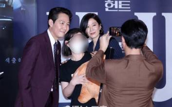 이정재 감독, 배우 전혜진(왼쪽부터)이 2일 오후 서울 강남구 메가박스 코엑스점에서 열린 영화 '헌트(HUNT)' 쇼케이스 및 VIP 시사회에 참석해 팬과 함께 포토타임을 갖고 있다.'헌트'는 조직 내 숨어든 스파이를 색출하기 위해 서로를 의심하는 안기부 요원 '박평호'(이정재)와 '김정도'(정우성)가 '대한민국 1호 암살 작전'이라는 거대한 사건과 직면하며 펼쳐지는 첩보 액션 드라마다. 오는10일 개봉.서병수 기자 qudtn@edaily.co.kr / 2022.08.02. 2022.08.02 21:26