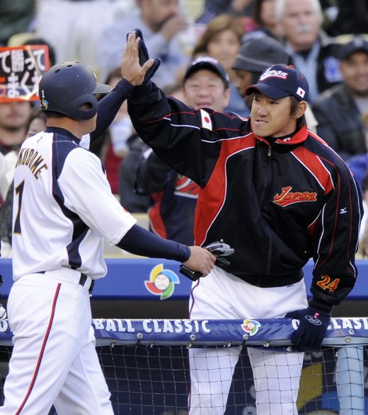 일본은 이나바 아쓰노리(니혼햄)와 오가사와라 미치히로(요미우리)의 연속 안타로 무사 1·2루 찬스를 맞았다. 이어 후쿠도메 고스케(시카고 컵스)의 타구를 선제 홈런을 때린 미국 2루수 로버츠가 빠뜨리면서 2-2 동점이 됐다.