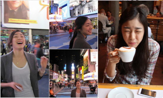 김연아는 24일 미니홈피에 지난 8월~9월 캐나다 밴쿠버·미국 뉴욕 등을 여행하며 찍은 사진을 공개했다. 그는 '유니세프 행사 차 뉴욕 갔을 때 잠깐의 틈을 타 밤늦게 타임스퀘어 구경'이라며 밝은 모습으로 찍은 사진을 공개했다. 또 2010 밴쿠버 동계올림픽에서 금메달을 땄던 퍼시픽 콜리세움 앞에서 찍은 사진엔 '내가 세상에서 가장 사랑하는 경기장. 정말 평생, 죽어서도 잊을 수 없는 추억'이라고 글을 남겨 올림픽에 대한 애틋한 마음을 드러냈다.