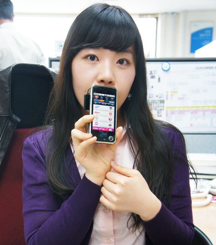 기아팬인 변유진씨가 일간 야구 Live 앱을 다운로드받고 기념 촬영을 하고 있다. 기아팬인 변유진씨가 일간 야구 Live 앱을 다운로드받고 기념 촬영을 하고 있다.