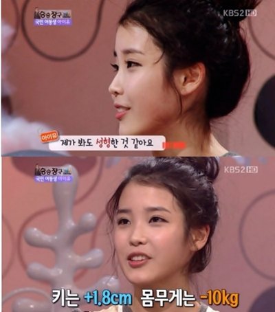 아이유는 13일 방송된 KBS 2TV '승승장구'에 출연해 데뷔 초부터 불거진 성형의혹에 대해 "주로 눈을 의심 받았는데 내가 봐도 성형한 것 같다"고 입을 열었다.