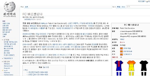 '집단지성' 백과사전인 위키피디아는 네티즌이 직접 수정할 수 있다. 바르셀로나를 싫어하는 한 네티즌이 이를 악용해 일부러 바꿔놓은 것으로 추정된다.
