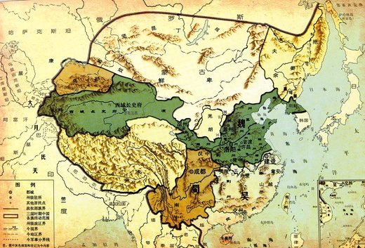 왜곡된 역사 인식을 보여주는 중국 지도 `중국강역변천여지도발전`. 화흠이 삼공으로 있던 위나라가 한반도 허리를 지배했다고 주장하고 있다.