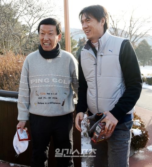 [포토] 홍명보 감독 ‘최강희 감독과 반가운 인사’