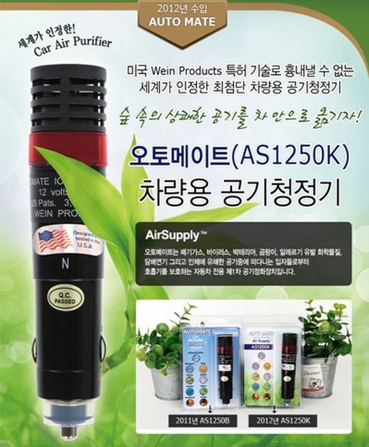 ㈜천년넷에서 독점 수입하는 오토메이트는 미국 Wein products에서 개발한 제품으로 천둥번개에서 착안한 자연정화의 원리를 이용해 공기내 미세먼지를 99%까지 제거해줘 미국특허를 3개나 획득했다. 오토메이트는 또 공기 1cc당 80만개의 음이온을 발생시켜 차 안에서 산림욕을 즐기듯, 차내 공기를 신선하게 바꿔준다.