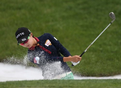 김효주가 18일 열린 국내 여자 골프대회 첫날 벙커 샷을 하고 있다. 16일 프랑스 파리에서 귀국한 그는 "어제(17일) 11시간반을 잤기 때문에 체력에 문제가 없다"고 말했다.