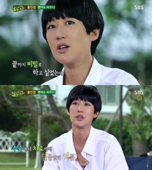 앞서 홍진경은 지난 26일 방송된 SBS 예능프로그램 '힐링캠프, 기쁘지 아니한가'에서 암 투병 사실을 밝혔다. 당시 그녀는 “아프다는 이야기를 밝히려고 하지 않았다. 나는 웃음을 주는 사람이었기 때문이다. 매직아이 기자간담회 때 가발 이야기를 할 수밖에 없었다. 약을 먹으면서 몸의 털이 모두 빠지더라”고 투병 사실을 고백했다.