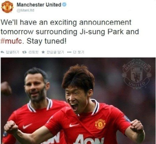 앞서 30일(현지시간) 맨체스터 유나이티드는 공식 SNS를 통해 "내일 박지성과 관련된 흥분되는 중대 발표가 있을 예정"이라며 "채널을 고정해주세요"라는 글과 함께 박지성과 라이언 긱스의 사진을 게재했다.