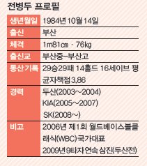 올해로 5년째 어깨 재활에 들어간 SK 왼손투수 전병두. 쉽지 않은 길이지만 1군 복귀를 위해 마지막 희망을 걸고 있다. 정시종 기자 SK 좌완 전병두(32). SK 팬들에게 유독 아픈 손가락이다. 2008년 5월 KIA에서 트레이드돼 SK 유니폼을 입은 전병두는 이듬해 주축 투수로 자리 잡았다. 빠른 공을 던지는 왼손 투수는 불펜과 선발을 오가는 스윙맨으로 궂은 일을 다했다. 2009년 8승4패 1홀드 8세이브 평균자책점 3.11로 맹활약하더니 이듬해에는 5승2패 1홀드 평균자책점 3.06으로 팀 통합우승에 일조했다. 하지만 그게 마지막이었다.