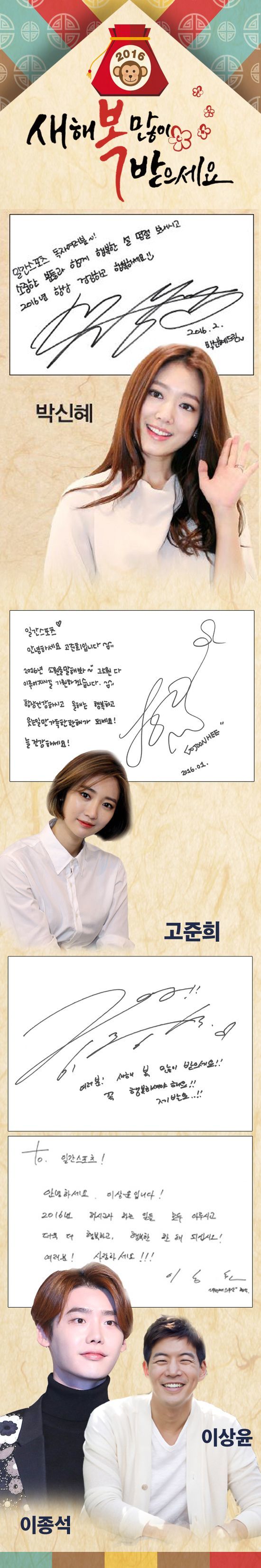 2016년 '병신년'을 맞아 일간스포츠에 스타들이 직접 손편지로 새해 인사를 보내왔습니다.