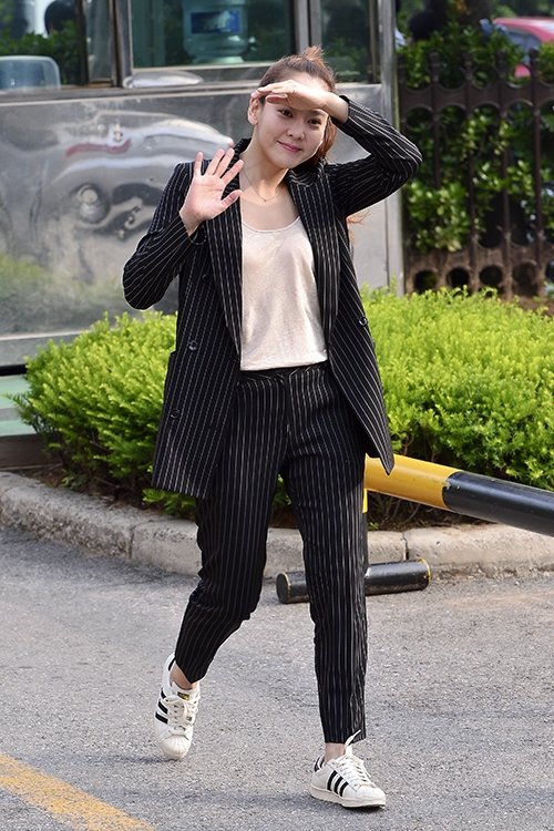 다나는 시크한 블랙 슈트 스타일을 선보였다.