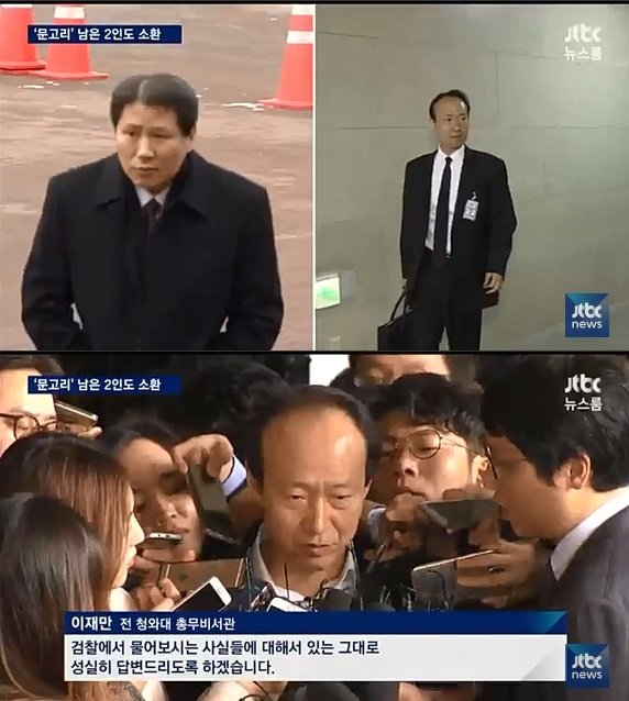14일 오후 방송된 JTBC '뉴스룸'은 "문고리 3인방으로 불렸던 안봉근 전 청와대 국정홍보비서관과 이재만 전 총무비서관이 검찰 조사를 받게 됐다"고 전했다.