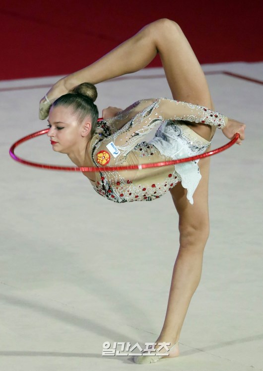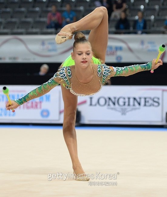 사진 속 주인공은 98년생 리듬 체조 선수 알렉산드라 솔다토바(Aleksandra Soldatova)로 빼어난 외모와 운동으로 다져진 늘씬한 몸매로 다수의 팬을 확보한 스타 선수.