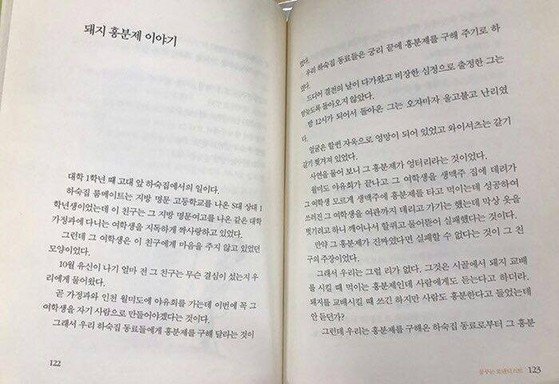가난했던 어린 시절부터, 고학생으로 대학을 다니던 이야기, 은행원이었던 지금의 아내를 만난 이야기, 아버지로서의 이야기 등을 담은 이 에세이에서 논란이 되는 부분은 ‘5.꿈꾸는 로맨티스트 : 음울함과 우울함으로 점철된 나의 청년기’에 서술되어 있는 ‘돼지 흥분제 이야기’(p121) 이다. “대학 1학년 때 고대 앞 하숙집에서의 일이다.”라는 문장으로 시작되는 이 대목에서 당시 홍 후보의 친구는 “곧 가정과와 인천 월미도에 야유회를 가는데 이번에 꼭 그 여학생을 자기 사람으로 만들어야겠다”며 홍 후보의 “하숙집 동료들에게 흥분제를 구해달라고 했다.”고 한다.