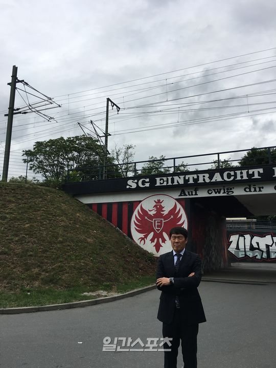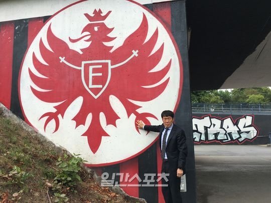 ▲프랑크푸르트 홈구장 입구 구단 상징 독수리,프랑크푸르트 엠블러(독수리마크) 앞 차붐. 사진=피주영 기자 지난 21일(한국시간) 독일축구연맹(DFB)과 인터뷰를 위해 독일 프랑크푸르트의 코메르츠방크아레나(아인트라흐트 프랑크푸르트 홈구장)의 기념관을 찾은 차범근(64)은 색이 조금 바랜 우승컵 하나를 들어 보였다. 바로 1979~1980시즌 유럽축구연맹(UEFA)컵 우승 트로피다.