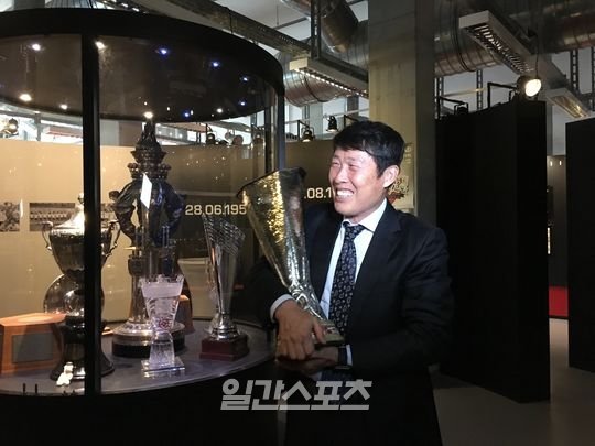 ▲우승트로피 들고 영광 떠올리는 차붐. 사진=피주영 기자 "팀에 적응도 완벽히 마치기 전에 우승을 경험했다. 원하면 늘 할 수 있는 것이 UEFA컵인 줄 알았다. 시간이 지나면서 UEFA컵이 얼마나 힘든 대회인 줄 깨닫게 됐다.(웃음)"