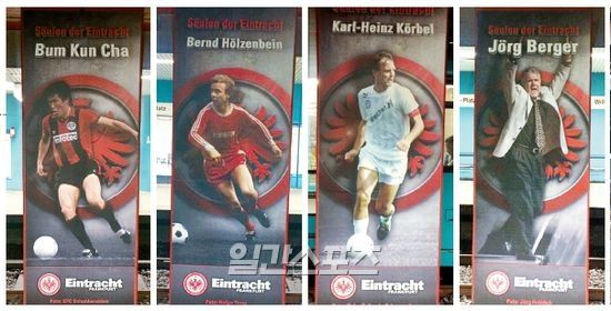 각 기둥에는 '아인트라흐트 레겐덴 11(Eintracht Legenden 11·프랑크푸르트의 전설 11인)'과 대표 사령탑의 인물화가 새겨져 있다. 2013년 1월 프랑크푸르트 팬들이 직접 뽑은 것인데 이 투표에서 차범근이 프랑크푸르트 역대 최다골 기록 보유자 베른트 휄첸바인(71·420경기·160골)과 나란히 공격수 부문에 이름을 올렸다.