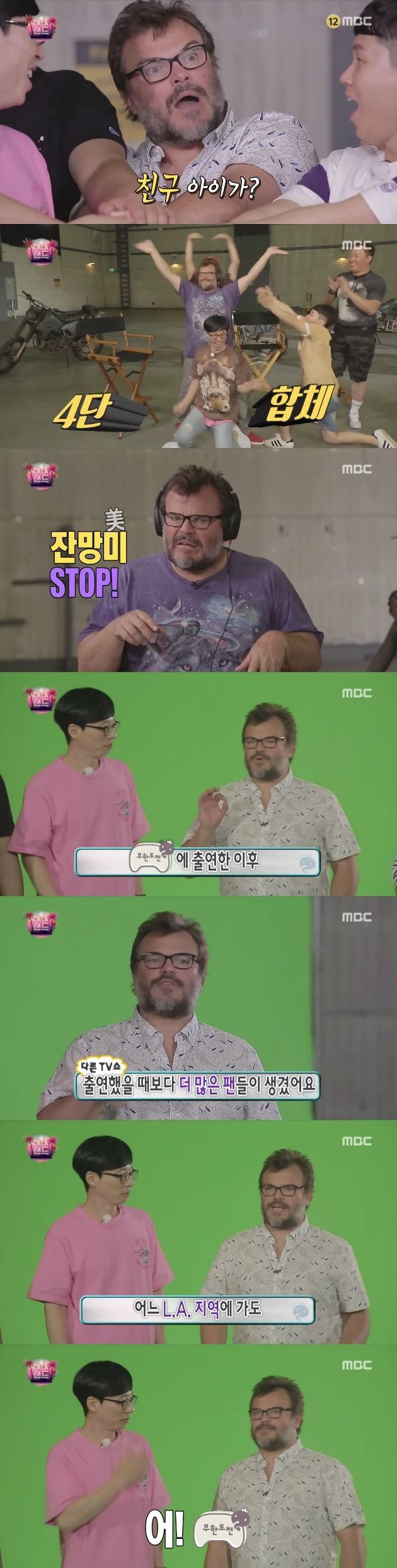 잭 블랙의 몰래카메라에 속은 멤버들은 "어쩐지 이상한 걸 시키더라"고 안도했다. 이어 방방 뛰며 격한 포옹을 나눴다. 잭블랙은 여전히 흥이 넘쳤고 음악 듣기 퀴즈에서도 실력을 발휘했다.