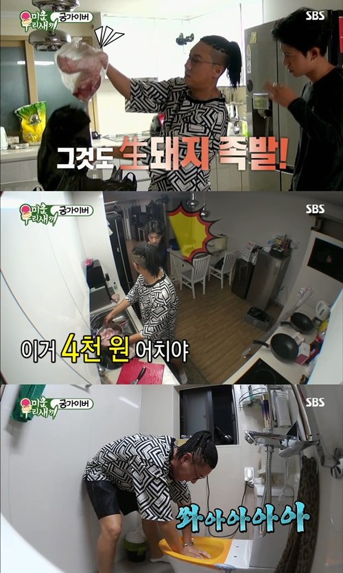이날 방송에서 '최고의 1분'을 차지한 것은 '궁셰프' 이상민 표 돼지 등뼈 쌀국수 시식장면이다. 이상민은 정준영의 집을 찾아가 "몸보신시켜주려고 제대로 된 걸 사 왔다"며 생돼지 족발과 등뼈를 꺼냈다. 등뼈는 4000원 족발은 8000원. 맛을 본 정준영은 "쓸데없이 맛있네"라며 최고의 칭찬을 뱉었다. 이어 이상민은 고장 난 정준영 손으로 집 변기를 고치고, 공기 청정기 청소까지 도와 ‘궁가이버’의 매력을 뽐내고 난 뒤 돼지 족발로 필리핀 요리까지 완성했다.