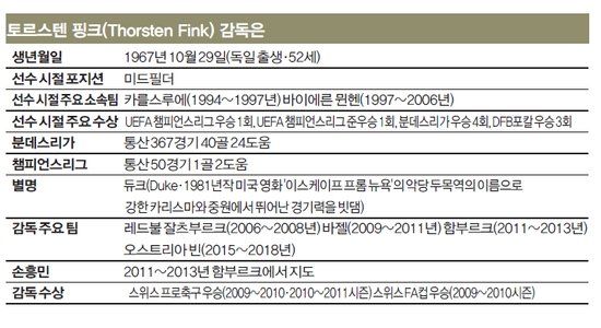 핑크 감독은 현역 시절 바이에른 뮌헨 소속으로 분데스리가 우승 네 차례 경험한 스타 출신이다. 강력한 카리스마를 앞세워 중원을 장악한다고 해 듀크라고 불리우기도 했다. 이어 뮌헨 소속으로 UEFA 챔피언스리그 결승전에도 두 차례 경험했지만 출전한 경기에서는 패배를, 우승한 시즌에는 그라운드를 밟지 못했다. 게티이미지·바이에른뮌헨 홈페이지 그는 제자가 자신의 챔피언스리그 우승 한을 풀어 주길 바란다. "UEFA 챔피언스리그 결승을 두 차례나 경험했지만, 경기를 뛰고 우승한 적이 없는 건 지금도 아쉬운 대목이다. 결승전은 크리스티아누 호날두나 리오넬 메시 같은 선수들도 긴장하게 만든다. 나도 그랬다. 손흥민도 결승은 처음이다 보니 떨릴 것이다. 그렇다고 걱정할 건 없다. 손흥민은 그동안 리그와 국제 대회에서 충분한 경험을 쌓았다. 특히 분데스리가 시절부터 위르겐 클롭(현 리버풀·당시 도르트문트 감독)을 상대로 강했다. 그때부터 쌓인 자신감이 이번 대결에서 큰 힘이 될 것 같다.(웃음)"