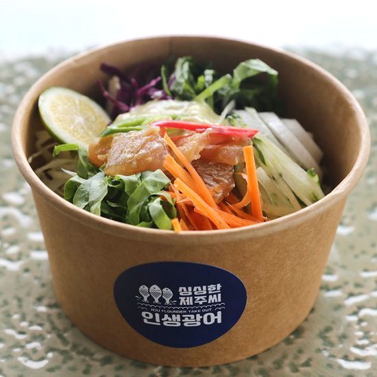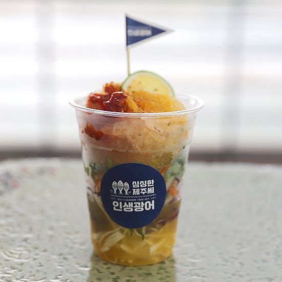 ‘인생광어 팝업스토어’는 서귀포시 ‘매일올레시장’ 동쪽 입구에 위치한 서귀포회직판장을 개조해 열린다. 15일부터 팝업스토어에서 판매하는 메뉴는 ‘퐁당광어’ ‘넙치덮치’ ‘광칩스’ 3종이다. 모든 메뉴는 피쉬케어연구소에서 건강관리 1등급을 받은 ‘싱싱한제주씨 대광어숙성필렛’을 사용, 특제소스에 숙성 과정을 거쳐 탱글한 식감과 감칠맛이 뛰어난 광어살을 활용해 만들었다. [퐁당광어]‘퐁당광어(5,000원)’는 도톰하게 썬 숙성 광어살을 컵에 담아 신선한 채소와 함께 새콤달콤한 살얼음 동치미 육수에 비벼 슬러시처럼 먹는 신개념 물회다.