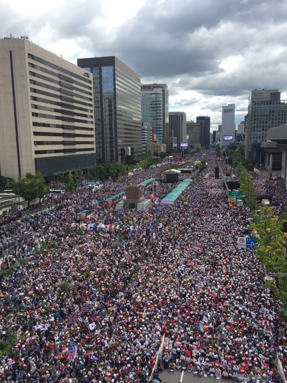 이날 집회에 따라 광화문 광장부터 서울시청 앞 서울광장까지는 발 디딜 틈 없이 인파들로 가득했다. 광화문에 몰린 인파로 인해 인근 지하철역인 2호선 시청역, 3호선 경복궁역, 5호선 광화문역 일대도 북새통을 이뤘다. 세종문화회관 앞 네거리는 차량이 통제되지 않아 길을 건너 광화문 집회장으로 가려는 참가자와 이를 막는 경찰들 간에 고성이 오가기도 했다. 또한 도로를 지나가려는 버스와 네거리를 건너는 인파들이 뒤섞이는 상황도 발생했다.
