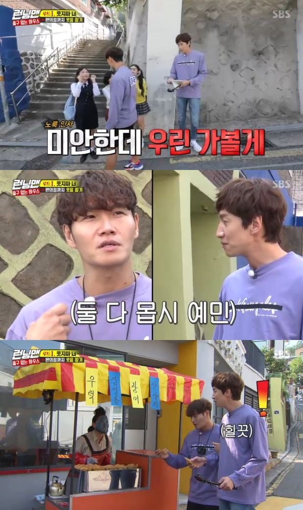두 사람은 20일 방송된 SBS 예능프로그램 '런닝맨'에서 편의점에 가는 길까지 등장하는 각종 웃음 폭탄을 피하는 미션을 받았다.