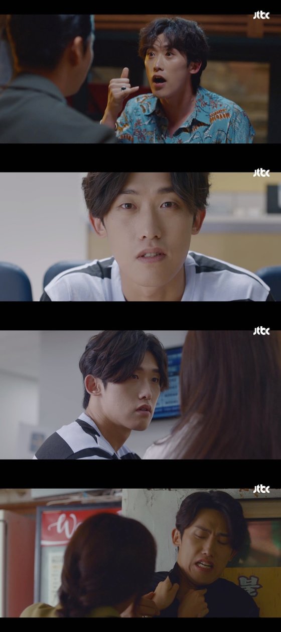 민진웅(문태현)은 6·7일 방송된 JTBC 금토극 '초콜릿'에서 그리스·한국에서도 하지원(문차영) 곁을 떠나지 않고 계속해서 사고를 치는 모습이 그려졌다.