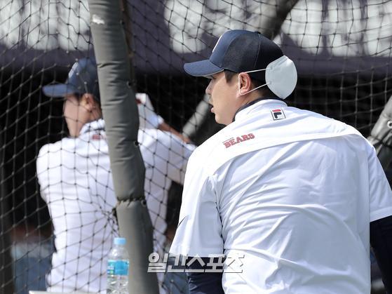 프로야구 두산베어스 정상호가 15일 오후 서울 잠실야구장에서 진행된 훈련에서 타격연습을 기다리고 있다.코로나19 여파로 시범경기가 전면 취소된 프로야구 10개 구단은 훈련과 자체 청백전을 이어가며 시즌개막을 기다리고 있다.잠실=김민규 기자 kim.mingyu@joongang.co.kr /2020.03.15/ 두산이 3차 캠프 첫 청백전을 치른다. 우완 이용찬(31)과 좌완 유희관(34)이 선발로 나선다.