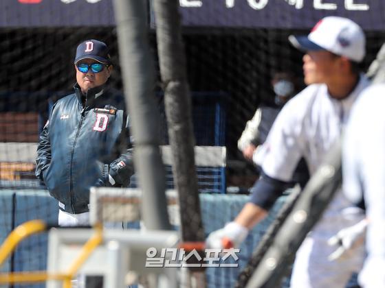 프로야구 두산베어스가 11일부터 잠실야구장에서 훈련을 시작했다.김태형 감독이 선수들의 훈련모습을 지켜보고 있다.한편 코로나19 여파로 시범경기를 전면 취소했던 한국야구위원회(KBO)는 이사회를 통해 시즌 개막을 4월 중으로 연기했다.김민규 기자 kim.mingyu@joongang.co.kr /2020.03.11/ 두산이 국내 3차 캠프 첫 실전 경기를 치렀다.