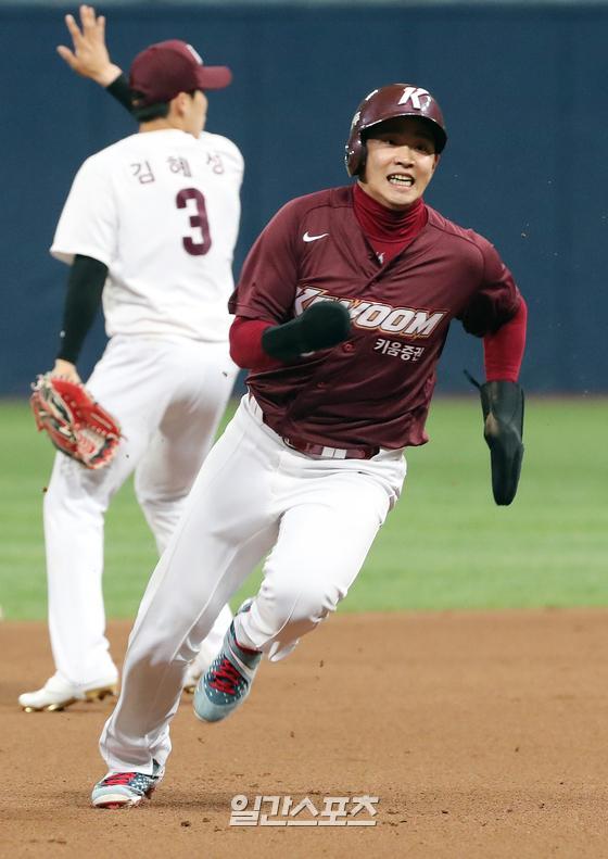 프로야구 키움 히어로즈 김웅빈이 26일 서울 구로구 고척스카이돔에서 진행된 자체 청백전에서 허정협의 후속타 때 3루로 뛰고 있다.고척=김민규 기자 kim.mingyu@joongang.co.kr /2020.03.26/ 키움 김웅빈(24)이 한 달 정도 전열에서 이탈한다.