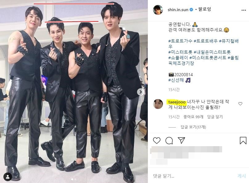 결국 이 사진을 접한 나태주는 "너 자꾸 나 안작은데 작게 나와보이는 사진 올릴래?"라며 댓글로 항의했고, 신인선은 "자꾸 아닌데? 한번인데?"라며 응수했다.