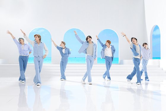 방탄소년단은 파란 하늘과 바다 배경이 돋보이는 새하얀 무대 세트에서 싱그러운 매력을 발산했다. 신나고 힘 넘치는 곡의 분위기에 맞게 유쾌하면서도 역동적인 퍼포먼스로 시청자들의 눈길을 사로잡았다.