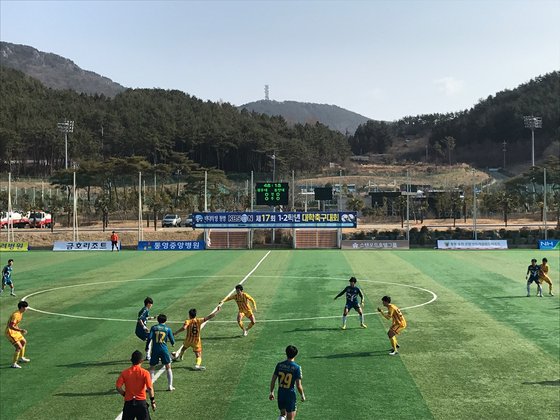 KBS N 제17회 1,2학년 대학축구대회 16강. 한국대학축구연맹 '디펜딩 챔피언' 용인대가 지난달 30일 경남 통영의 산양스포츠파크에서 펼쳐진 'KBS N 제17회 1,2학년 대학축구대회' 16강 광주대와 경기에서 2-1로 승리, 8강 진출에 성공했다. 단국대와 홍익대는 각각 안동과학대와 전주대를 꺾고 8강에 진입했다.
